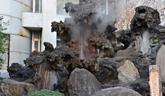 熱海七湯の一つで、かつて世界的に有名だった自噴泉。現在は約5分ごとに人工的に湯を噴出させ、往年の姿を再現している。熱海の温泉文化を象徴するスポット。